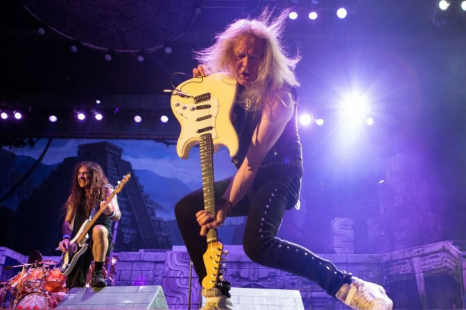 No sehän lähti! Kitaraansa keikalla päänsä yläpuolella pyörittäneelle Iron Maiden -kepittäjälle kävi vanhanaikaiset