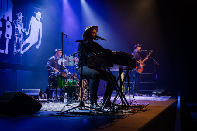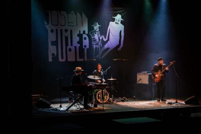 Popin, jazzin ja noirin kaukaisella raja-alueella operoiva Josén Pimeä Puoli (Jose Mäenpää, Arto Nurmi ja Jussi Miettola) kiertää parhaillaan Suomen konserttisaleja Hyppää kyytiin! -kiertueen merkeissä. Perjantaina 31.10. trio nähtiin kiertueen merkeissä Turun Logomon Teatrossa, jossa tunnelmia aistimassa oli myös Soundin kuvaaja Kimmo Nurminen.